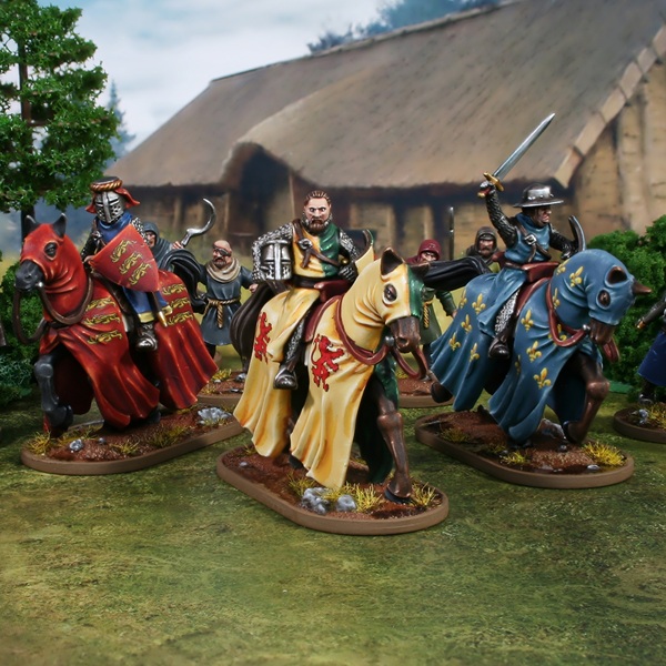 I built this model using Wargames Atlantic's Mounted Knights (1150-1320) plastic kit and a head and arm from the Foot Knights (1150-1320) box. My aim with this guide is to leave you with a nice playable character from the "Dramatis Personae" section in the back of The Barons' War Second edition book and pay homage to the Footsore Miniatures model also available.