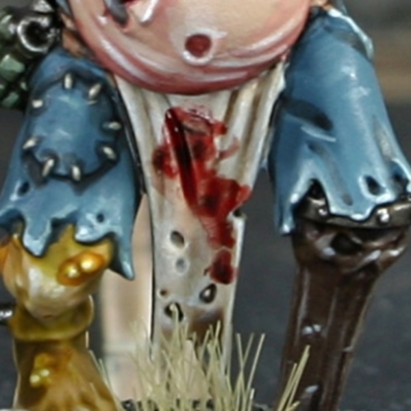 For the blood effect, I stippled on patches of Blood For The Blood God , thin stippled in a little Black while it was still wet. It is also a good idea to blend out the edges while it is still wet, to stop it looking like distinct glossy blobs.