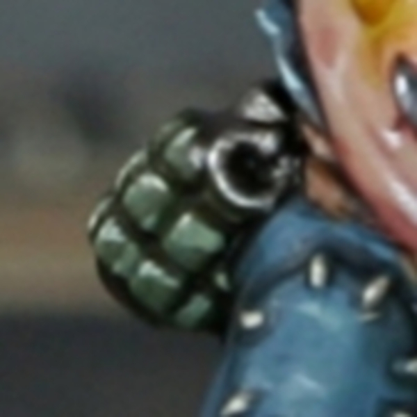 - Highlight everything again, this time with a fine line of Skrag Brown and Ushabti Bone mixed 1:1. This is a good mix to throw in occasional fine lines as scratches too.