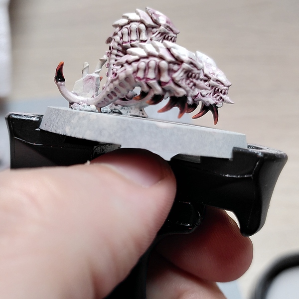Paint 2/3 of all claws with Khorne Red diluted 3:2 with water