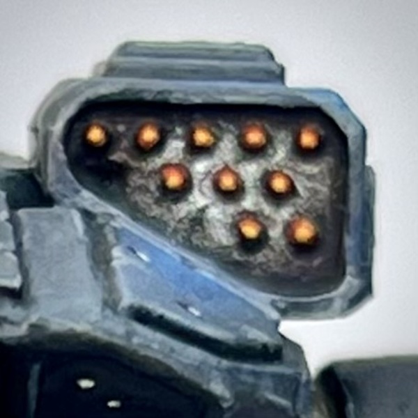 - Apply a very light dry brush of Dwarven Iron to the very center of the launcher to lighten it up a bit