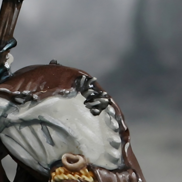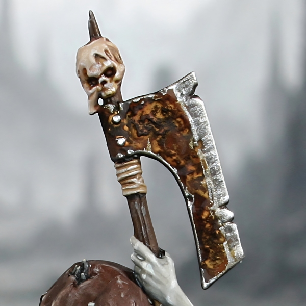 - Finish with very small and specular highlights of 1:1 Gorthor Brown and Wraithbone .