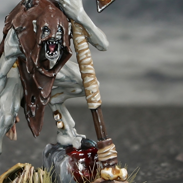 - Add chunky highlights with a 1:1 mix of the original base colour and Gorthor Brown .