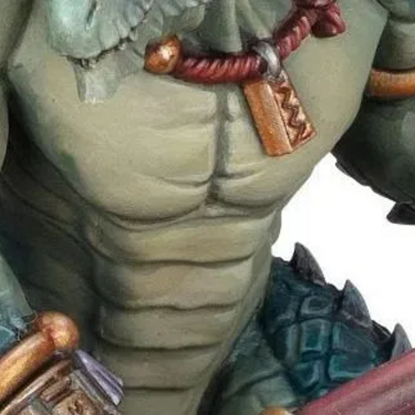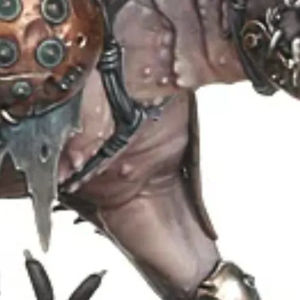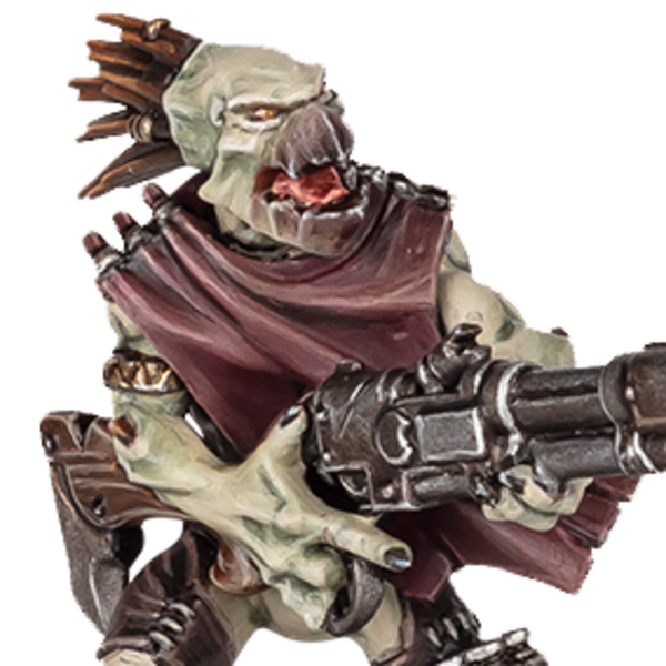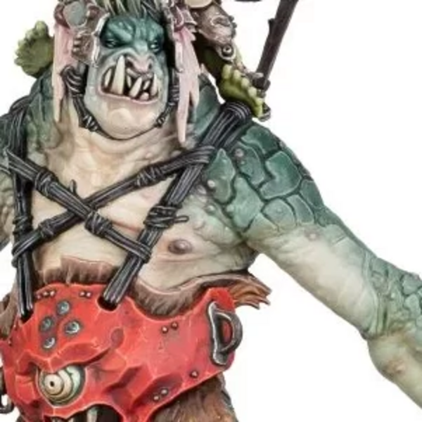 Basecoat: Deepkin Flesh Recess Wash: Stormvermin Fur Layer: Deepkin Flesh Highlight: Deepkin Flesh / White 1:1 Glaze: Skavenblight Dinge (horns) Glaze: Abaddon Black (horns) Glaze: Sons of Horus Green, Lupercal Green (around eyes, head areas, etc.)
