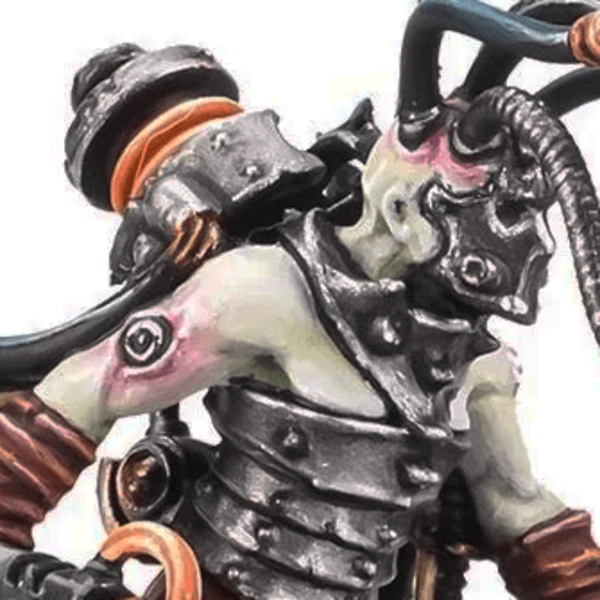 Basecoat: Daemonette Hide, Rakarth Flesh, Kislev Flesh & White 1:1:1:1 Glaze Shade: Bugman's Glow Recess Shade: Dryad Bark Glaze Shade: Naggaroth Night Glaze Highlight: Daemonette Hide, Rakarth Flesh, Kislev Flesh & White 1:1:1:1 Glaze Highlight: Basecoat Mix & White Edge Highlight: White