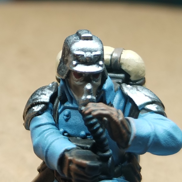Base all remaining metal, the pipe and the gun with a black, to win time Grim Black will do well