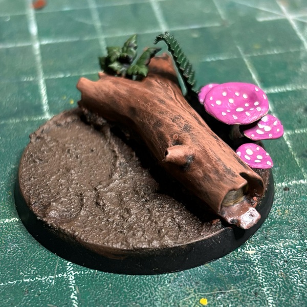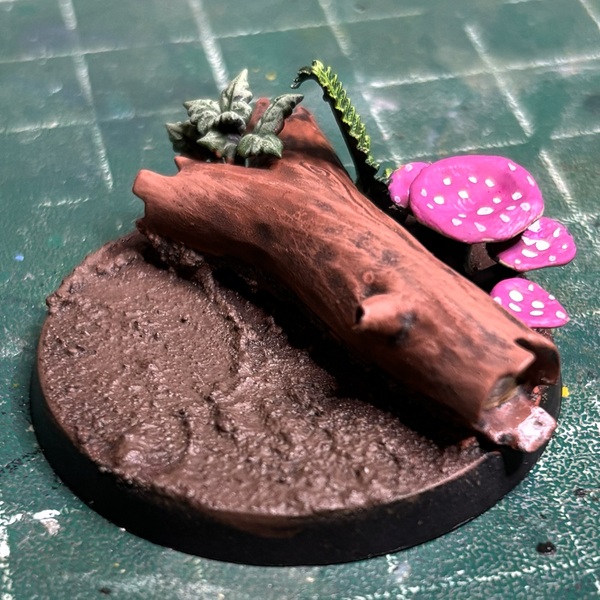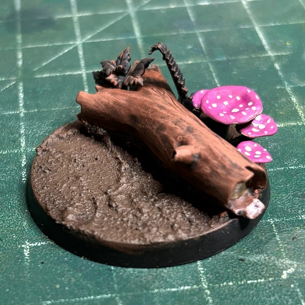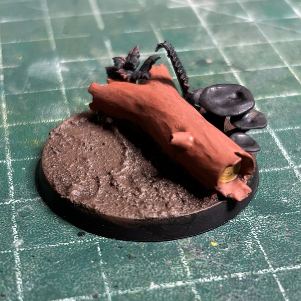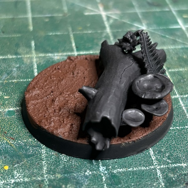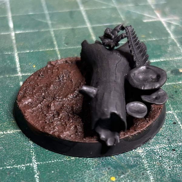 - Apply AK Dry Ground to entire base, push small roots into compund while still wet. Once dry, add glue to roots to secure them