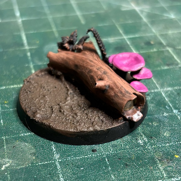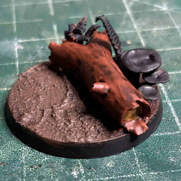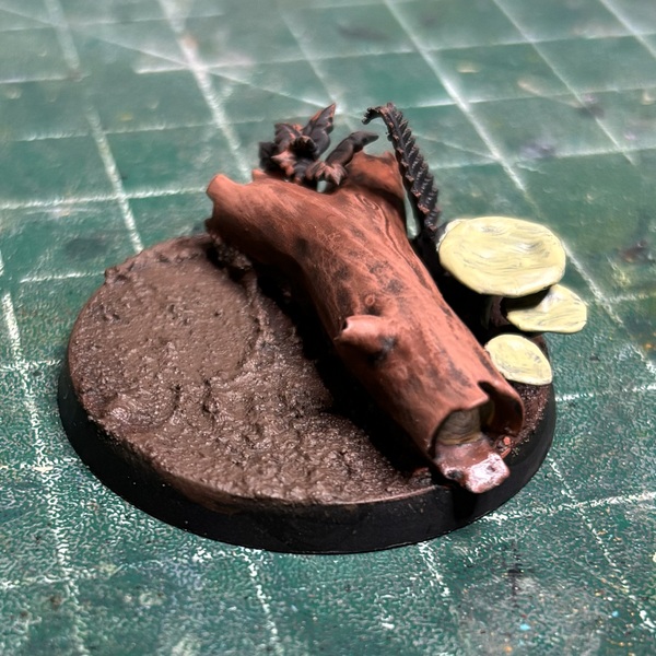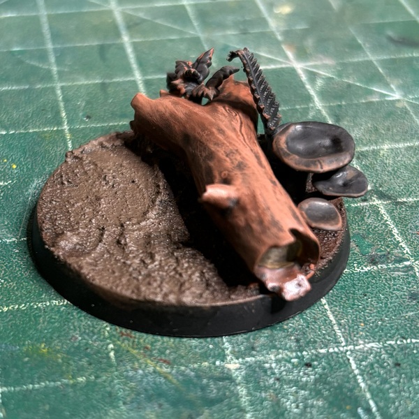Paint logs/branches/roots with Cavalry Brown . Paint cut portions of wood Golden Shadow