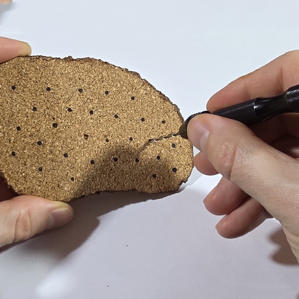 Cut the shape from your cork sheet using scissors or a sharp knife. Make sure the cut it as least the distance between stalks from the closest dot.