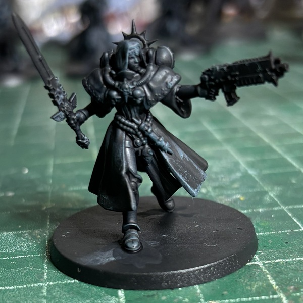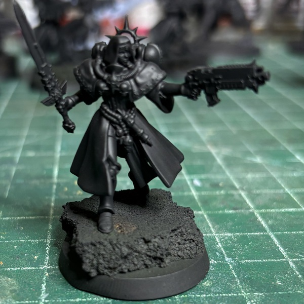 Prime Black , then airbrush Black to get a nice finish and amke sure the model is completely covered