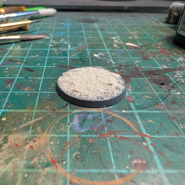 Apply Vallejo ground texture. I like 26.215 Grey Sand